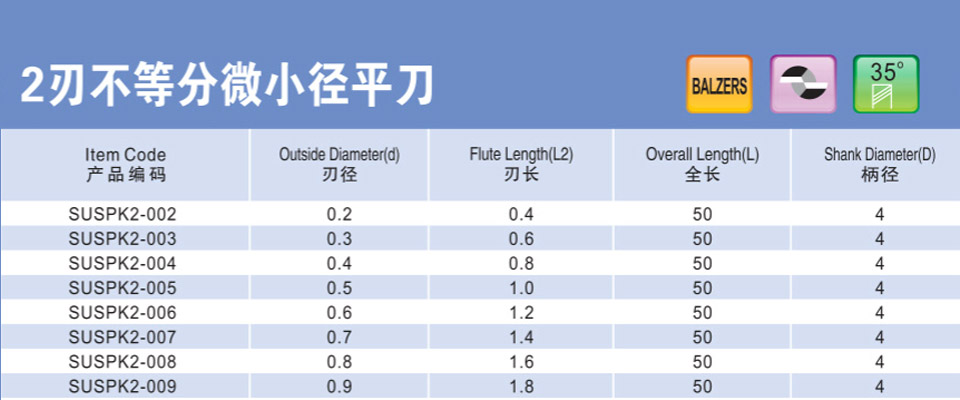 2刃微小徑深溝平刀