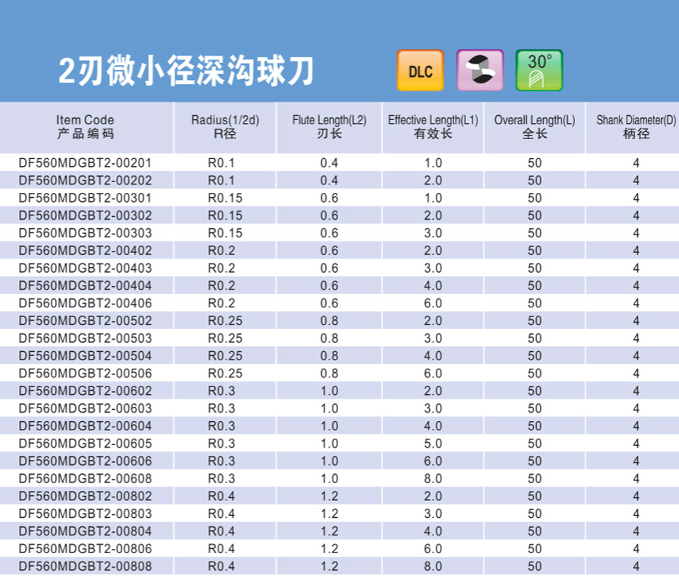 2刃微小徑深溝平刀