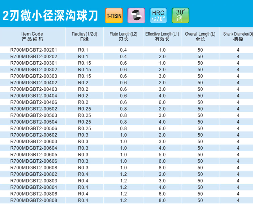 2刃微小徑深溝圓鼻刀