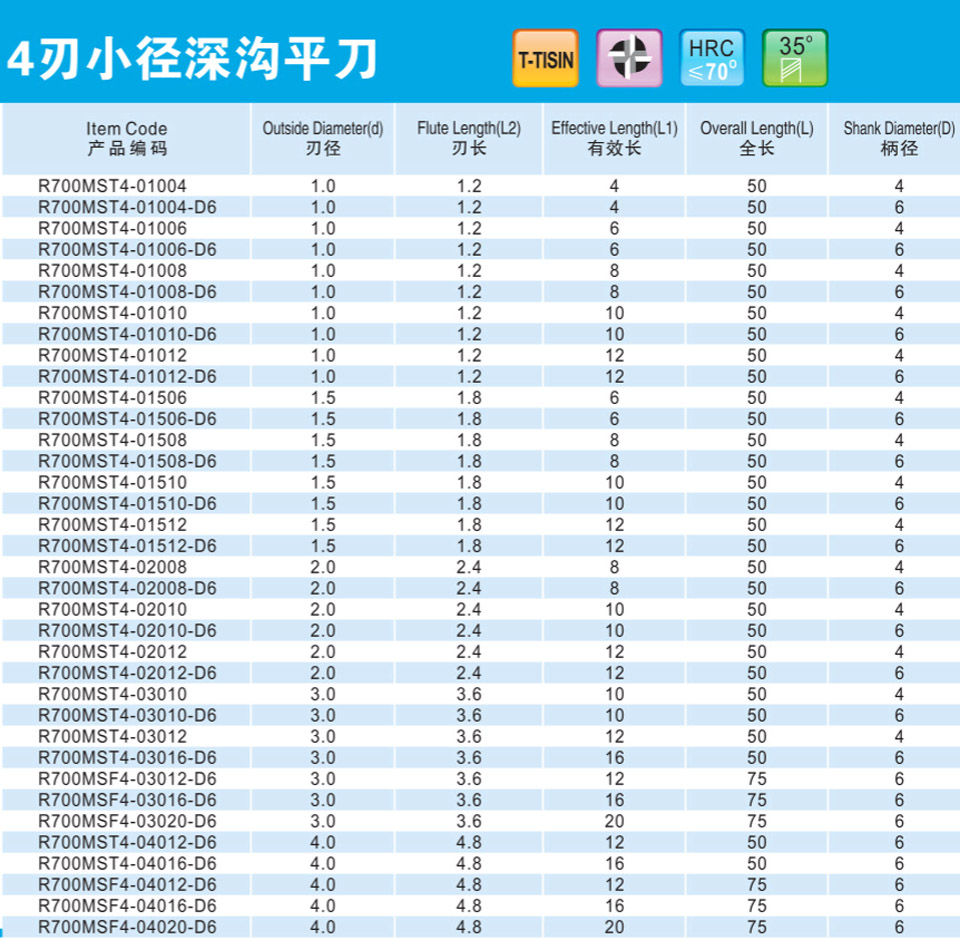 4刃小徑深溝平刀