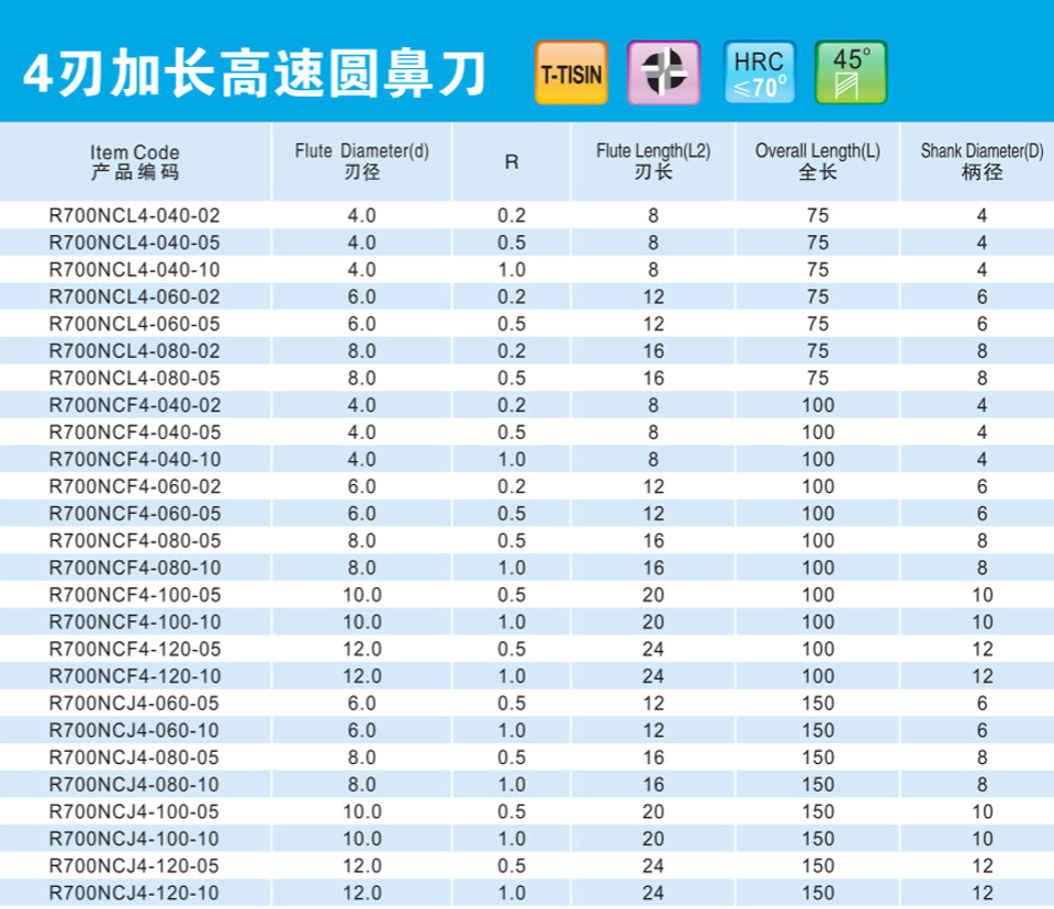 不等分不等螺旋加長(zhǎng)圓鼻刀4刃