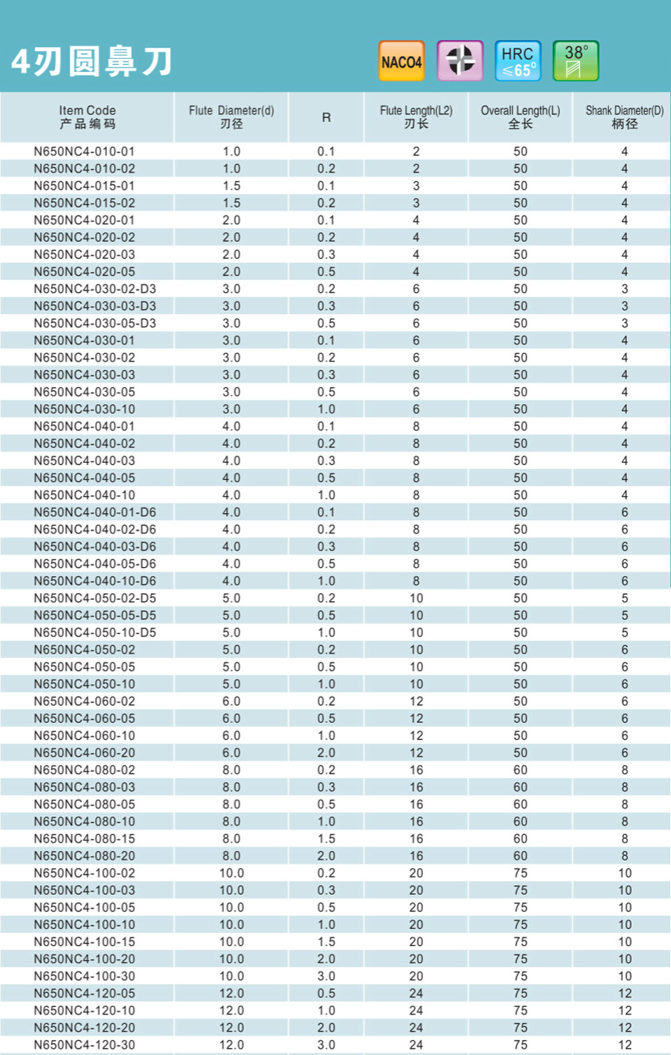 不等分不等螺旋加長圓鼻刀4刃