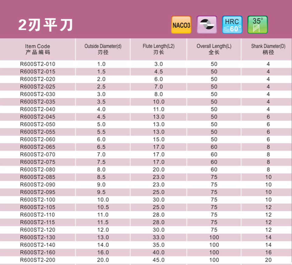 2刃微小徑深溝平刀