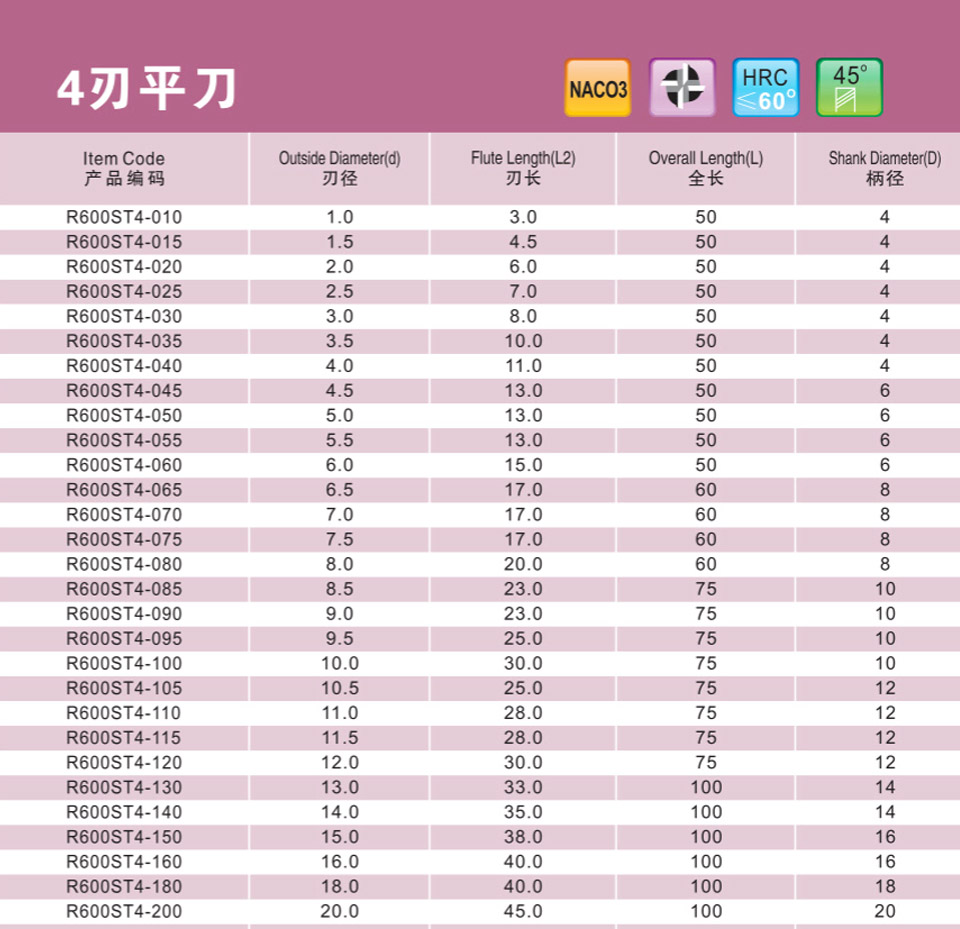 4刃小徑深溝平刀