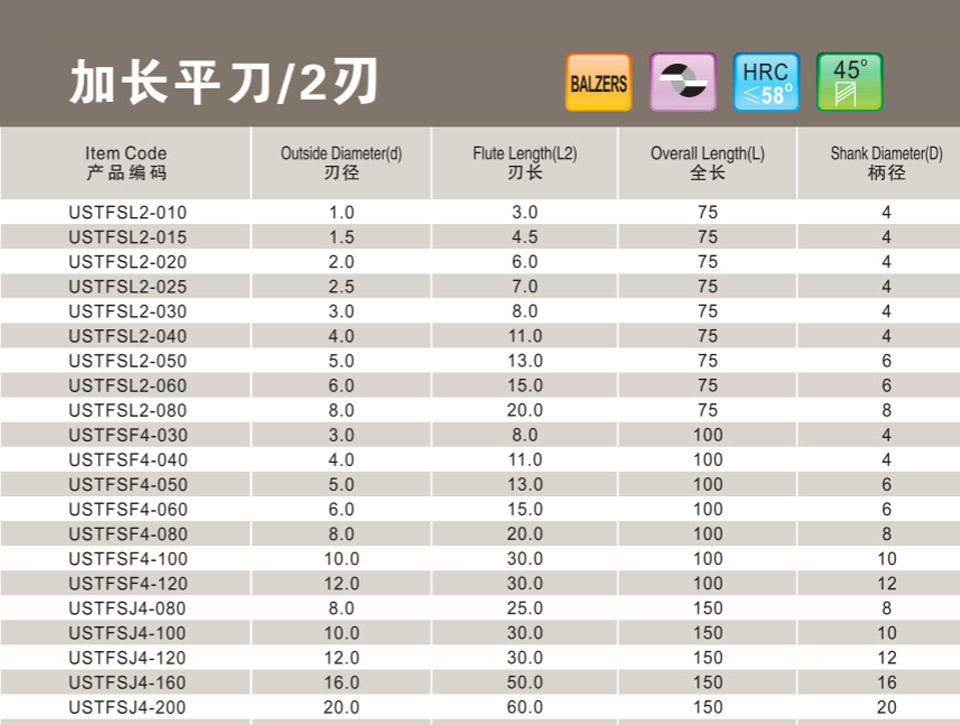 2刃微小徑深溝平刀