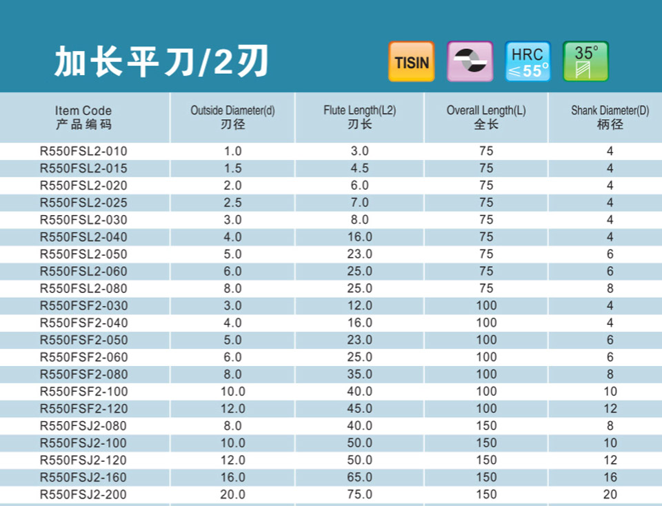 2刃微小徑深溝平刀