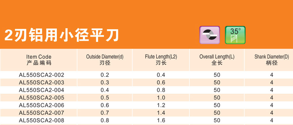 2刃微小徑深溝平刀