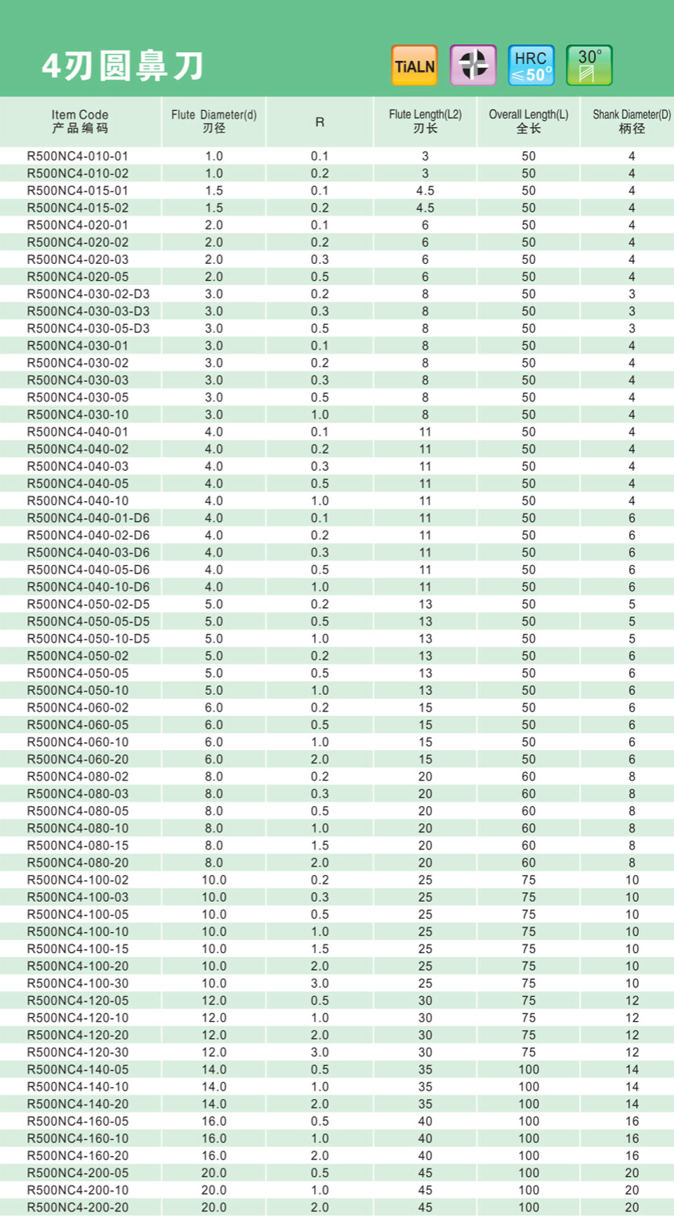 不等分不等螺旋加長(zhǎng)圓鼻刀4刃